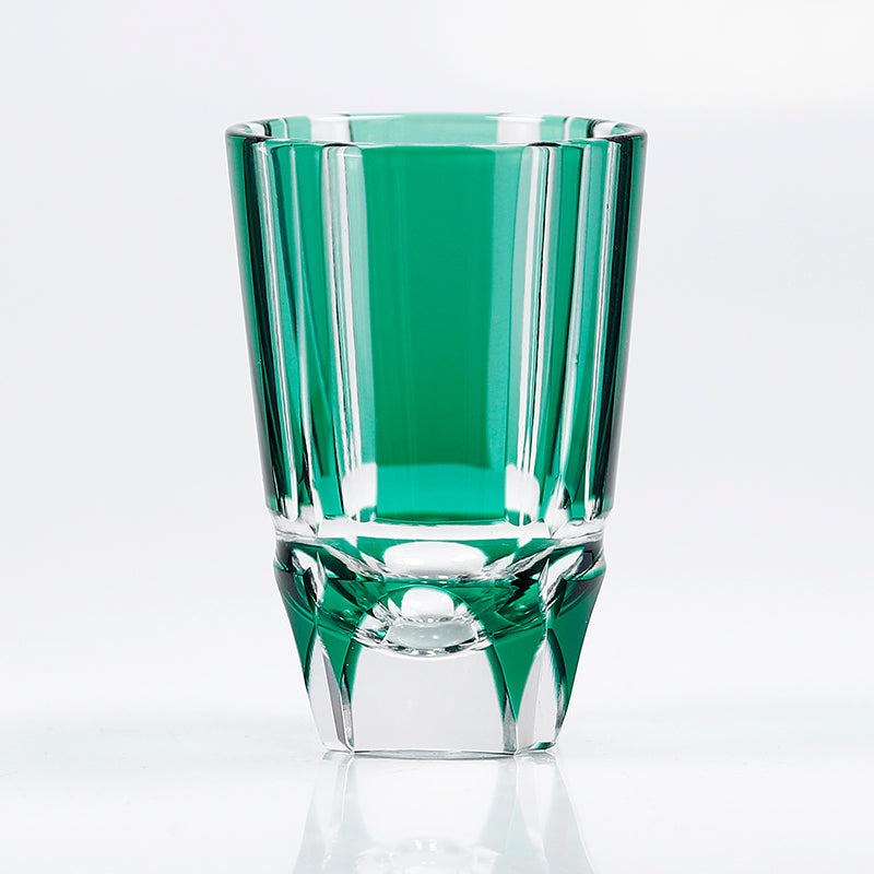 Edo Kiriko Handgeschliffener Sakebecher – Smaragdgrün mit Säulenschliff